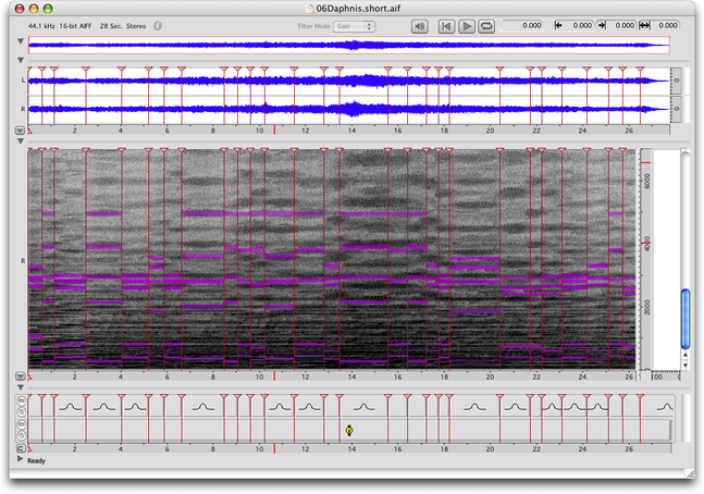 Pour "lisser" les transitions, on utilise une dilatation/compression de facteur 1 et le calcul est effectué avec grande taille de fenêtre (de l'ordre de 32000).