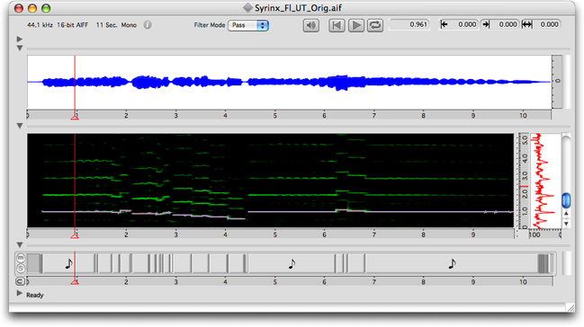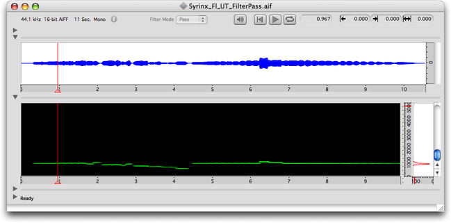 Après avoir calculé la Fréquence Fondamentale F0, celle-ci a été convertie en filtre en cochant l'item "Use Annotations As Filters" du menu "Processing" et appliquée sur le même son en mode "Pass".