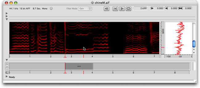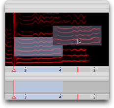Pour couper la sélection, il faut utiliser l'item “Cut” du menu “Edit” ou la combinaison de touches “Pomme” X (⌘X). ![]() Déplacement de la région “temps/fréquence”