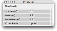 La palette “Inspector” donne accès aux paramètres : début, fin et durée.