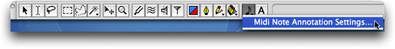 | Annotation par notes Midi : outil et filtres![]() Outil annotation par notes Midi Cet outil permet de créer manuellement des rectangles représentant des notes sur l’échelle Midi. En même temps apparaît sur la piste du séquenceur (zone 5) un élément de piste de même durée portant l'icône correspondante. ![]() L'élément de piste “filtre d'annotation Midi” et l'inspecteur Ces rectangles peuvent être déplacés horizontalement et verticalement à l'aide des flèches "gauche, droites, haut, bas", pour plus de précisions. Cela permet, en utilisant le magnétisme, de déplacer les traitements pour les caler à la grille temporelle ou fréquentielle. # Remarque importante : Ces rectangles d'annotation Midi sont utilisés aussi dans le traitement de Transposition Mélodique ("Melodic Transposition" du menu "Treatments"). Reportez-vous à la section : Transposition mélodique : "Melodic Transposion". Si plusieurs annotations se superposent, seule la transposition la plus grave est prise en compte. Ce rectangle se comporte exactement comme un filtre de type surface (redimensionnement, déplacement, duplication…, voir section : Points communs à toutes les surfaces). Les fonctions “Replicate in Frequency...” et “Replicate in Time...” du menu “Edit” sont actives. # Remarque : Comme ce sont des notes Midi, il est possible de les redimensionner en temps, mais, évidemment pas en fréquence : car l'intervalle défini par note est fixe (100 “cents”). Lorsqu'on déplace une note sélectionnée à l'aide des flèches “up” et “down”, la note se déplace par demi-ton. • Filtres d'annotation Midi : Ces rectangles sont appelés “filtres d'annotation Midi” (“Annotation Filters”), car ils peuvent être transformés en filtres surfaces lorsque l'item “Use Annotations As Filters...” du menu “Processing” est coché. # Remarque importante : L'utilisation la plus naturelle est de se mettre en mode “Pass” avec le menu déroulant “Filter Mode” situé en haut de la fenêtre (voir section : Partie supérieure de la fenêtre). Le mode “Reject” permettra de jouer le complément. L'option “Muted”, dans l'inspecteur, permet de désactiver individuellement chaque filtre par bascule on/off. L'inspecteur permet de modifier n'importe quel paramètre. Dans le cas de l'utilisation traditionnelle de filtrage, un double clic sur le rectangle ou sur l'élément de piste ouvre la boîte de dialogue permettant de lui donner un gain. ![]() Le gain L’inspecteur ne permet pas de modifier ce gain. La fonction “Invert” du menu “Treatments” est inactive. Pour régler le paramétrage Midi, il faut cliquer sur le petit triangle noir à droite de l'outil dans la palette et sélectionner l'item “Midi Note Annotation Settings...”. ![]() Réglage de l'outil annotation par notes Midi Par défaut, le canal Midi est 1 et la vélocité 64. En changeant le canal Midi, vous changez la couleur du rectangle, ce qui peut être utile pour distinguer certaines parties musicales. ![]() Annotation Midi Exemples sonores