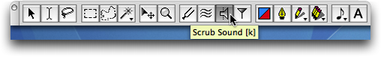 Le mode “Scrub” permet de se déplacer dans le signal en faisant glisser la souris en avant ou en arrière à la vitesse voulue : le signal sera lu SANS TRANSPOSITION, à la hauteur originale.