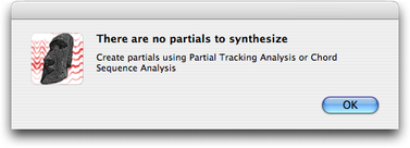 # Remarque : AudioSculpt affiche un boîte d'alerte, si on essaye de synthétiser sans avoir des partiels.