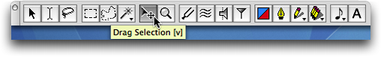 L'outil “déplacement de sélection” permet de saisir l'image du sonagramme et de la déplacer en tout sens dans sa fenêtre (l'affichage de la “fenêtre dans le son” suivra).