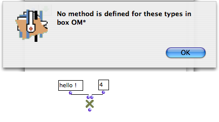 ![]() | Minor programming errors are usually displayed in the Listener window as well as plain messages. This allows OM to keep on running smoothly and the user to understand the origins of the error. Such error messages can occur when evaluating a box, for instance. |